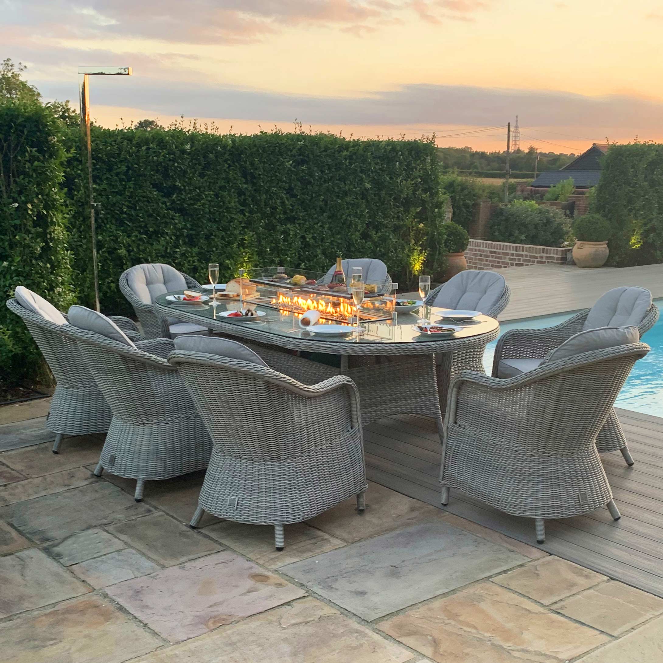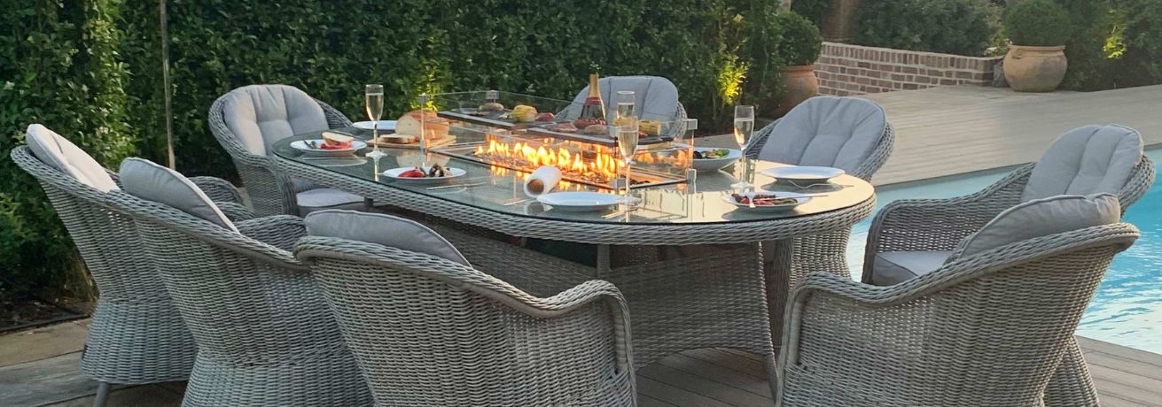 Pebble 8 Seat Rectangular Fire Pit Dining Set