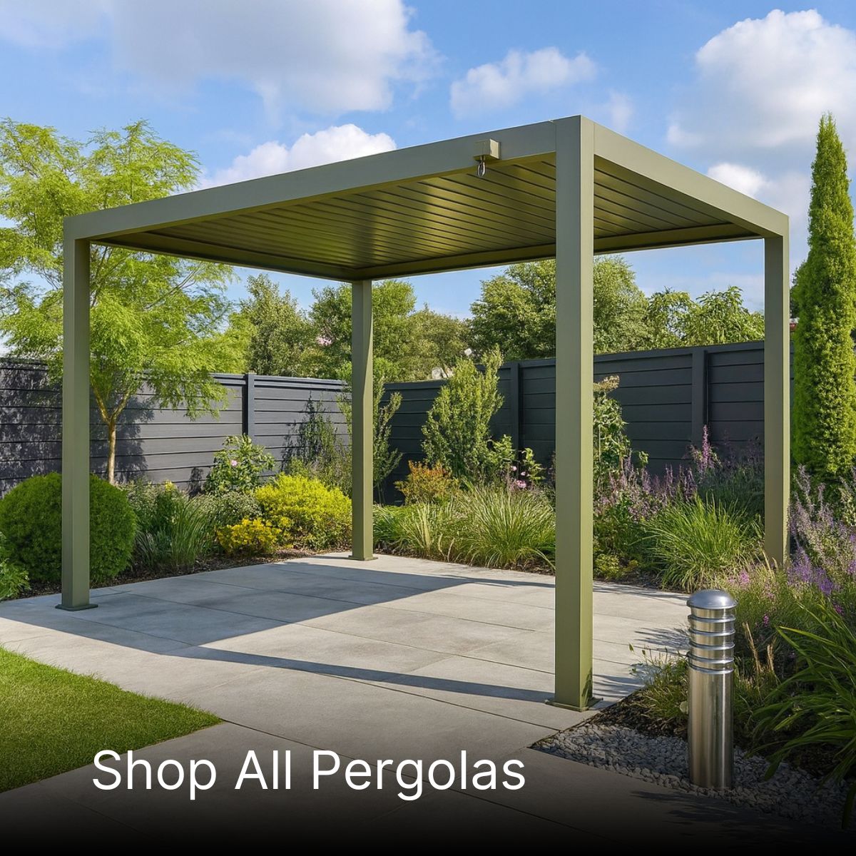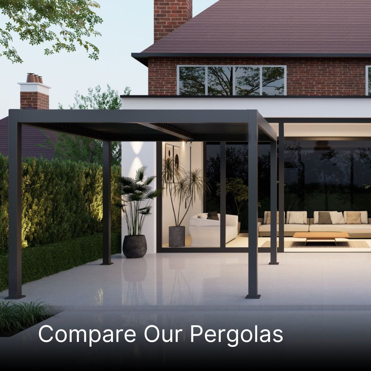 The tilting louvred pergola roof allows you to relax outdoors no matter the weather. Open the pergola louvres to let sunlight through on a warm summer's day, or close them shut during a sudden downpour.